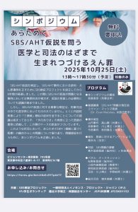 シンポジウム あらためてSBS/AHT仮説を問う「医学と司法のはざまで生まれつづけるえん罪」参加申込受付中!